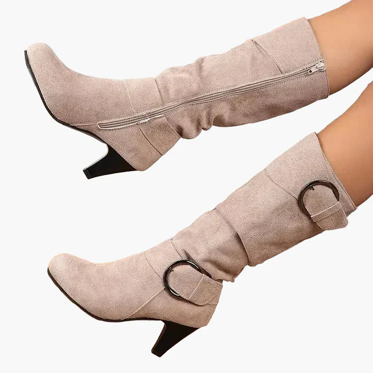 Diese stilvollen Damen Stiefeletten mit mittelhohem Absatz und markanter Schnalle überzeugen durch ihr modisches Design und ihre vielseitige Einsetzbarkeit. Ob für den täglichen Weg ins Büro, einen Stadtbummel mit Freunden oder als schicker Hingucker am Abend – diese Boots passen zu jedem Anlass und Outfit. Das klassische, elegante Design macht sie zum perfekten Begleiter für Herbst und Winter. Der praktische Reißverschluss sorgt für einfaches An- und Ausziehen, während die dekorativen Schnallendetails den modernen Look unterstreichen. Kombinieren Sie diese Stiefeletten zu Jeans, Kleidern oder Röcken für einen stilvollen Auftritt bei jedem Wetter.